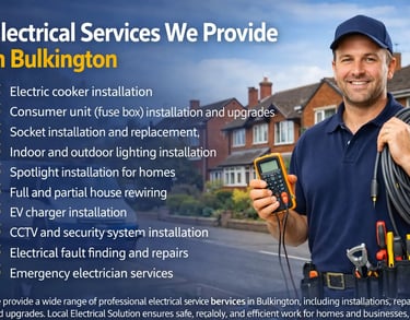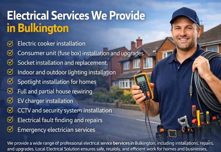 Need a reliable electrician in Bulkington? Local Electrical Solution provides fast, affordable, and professional services for homes and businesses. From installations to emergency repairs, our certified team ensures safe, high-quality work you can trust every time.